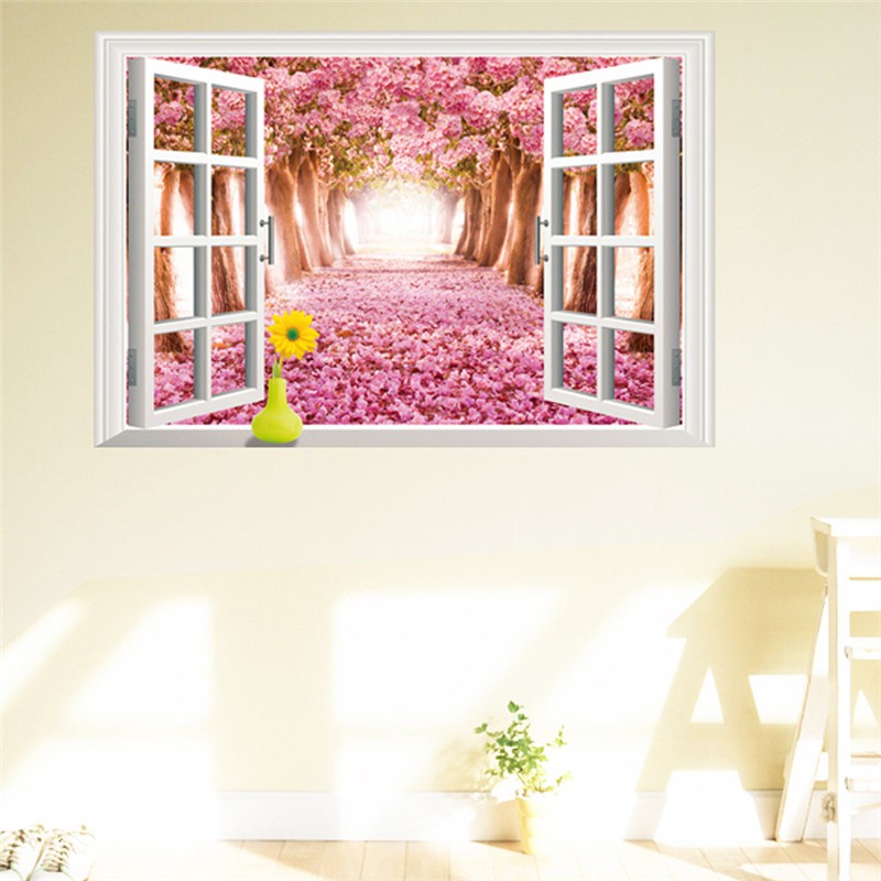 Custom 3d Photo Wallpaper Flower Romantic Cherry Blossom Tree Small Road Wall Mural Wallpapers For Living Room Bedroom De Parede